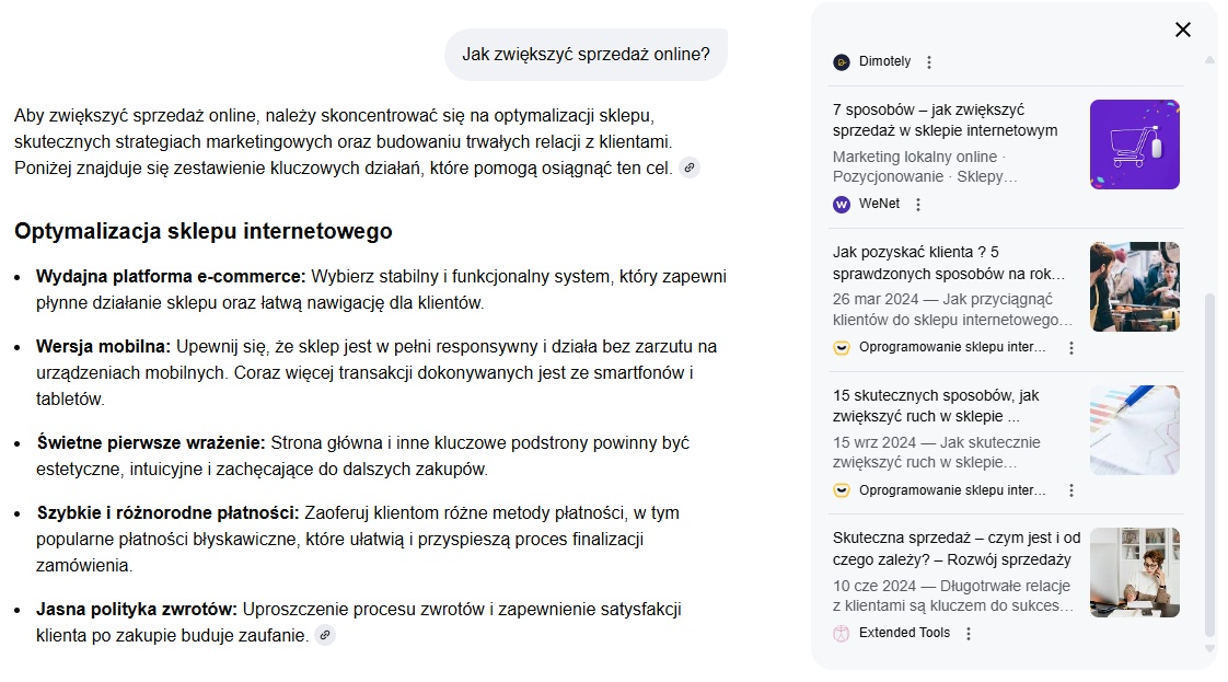 Jeśli Twoja treść zostanie zacytowana w tym bloku, możesz zyskać widoczność marki i autorytet eksperta nawet bez klasycznego kliknięcia. To ogromna szansa, by zwiększyć zasięg i rozpoznawalność w nowym ekosystemie wyszukiwania.