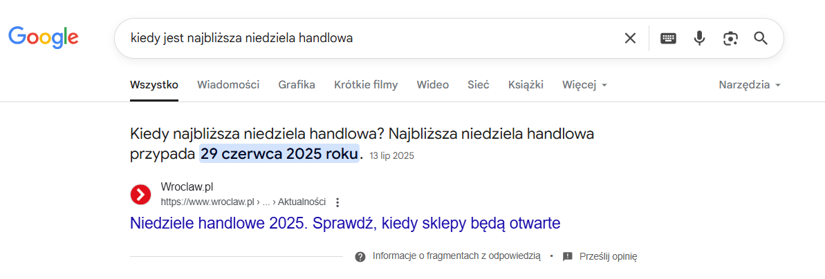 Czego oczekuje użytkownik? Na pewno nie długiego artykułu, z którego pozna całą historię wprowadzenia niehandlowych niedziel. Chce prostej odpowiedzi w tym stylu: