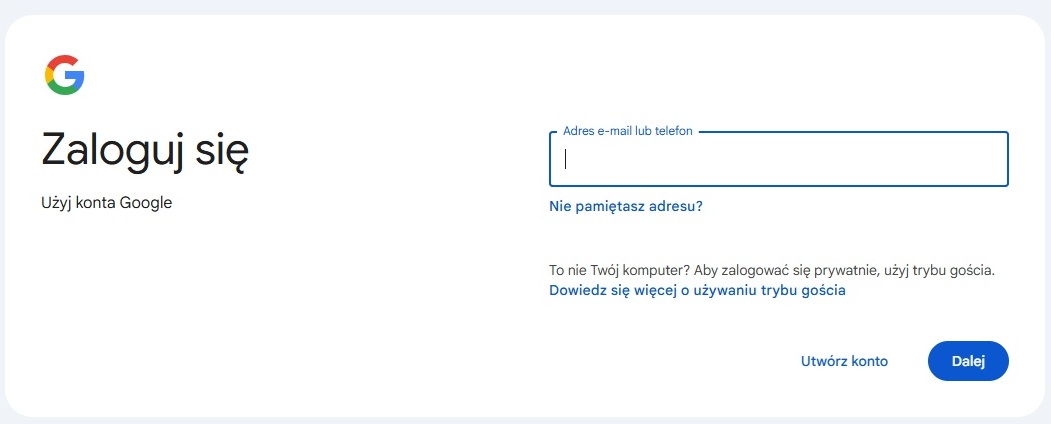 Zanim zaczniesz tworzyć mapy miejsc swojego biznesu, musisz posiadać aktywne konto Google, które zostanie przypisane jako właściciel Twojej wizytówki biznesowej. Jeśli jeszcze go nie masz, utwórz je wchodząc na stronę: https://accounts.google.com/