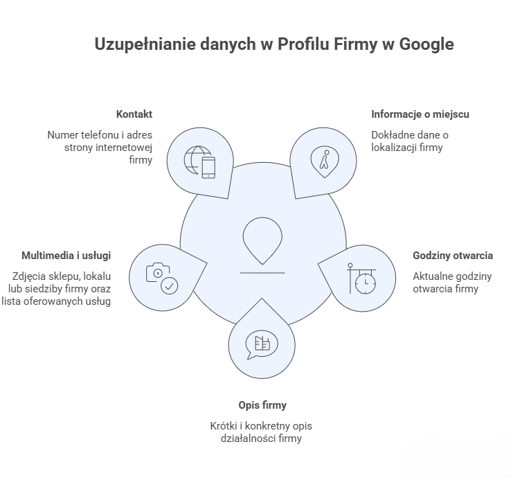 Aby Twoja wizytówka była skuteczna i szybko przeszła weryfikację, zadbaj w szczególności o poniższe elementy: