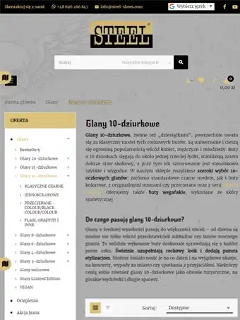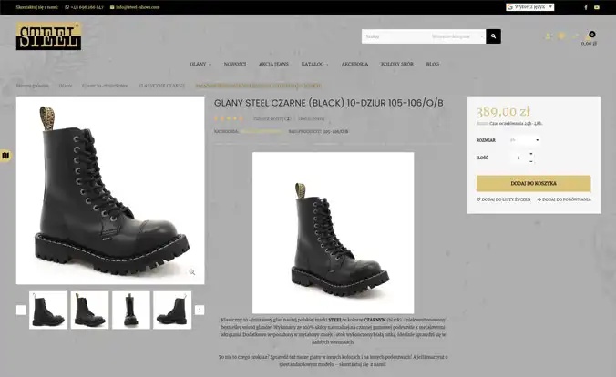 STEEL to jedna z najpopularniejszych marek produkujących glany. Cieszy się dużym uznaniem od ponad 20 lat w kraju oraz w Europie. Produkty firmy są dostępne w ponad 15 krajach.